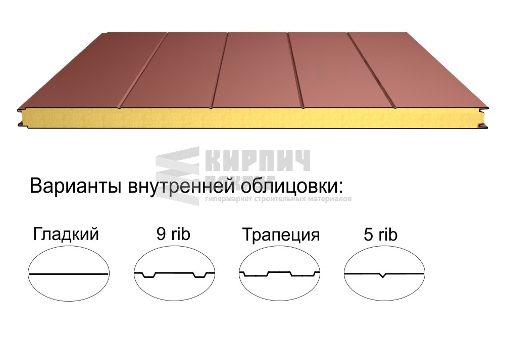 В интернет-магазине "Кирпич Вокруг" Вы можете купить Стеновая трёхслойная сэндвич-панель 5 rib 100мм 1000мм с видимым креплением минеральная вата Полиэстер Доборник в Сургуте, а наши специалисты готовы вам помочь с выбором по адресу: , или оказать консультацию по телефону: .